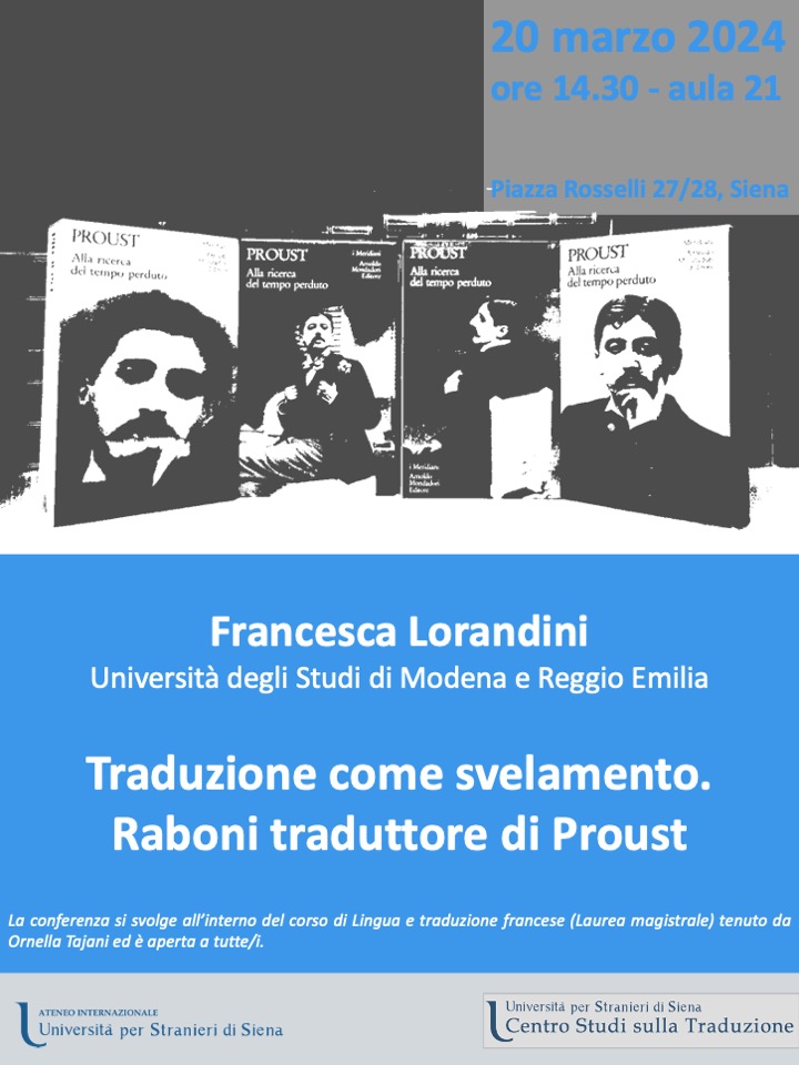 La conferenza di Francesca Lorandini si svolge all’interno del corso di Lingua e traduzione francese (Laurea magistrale) tenuto da Ornella Tajani.