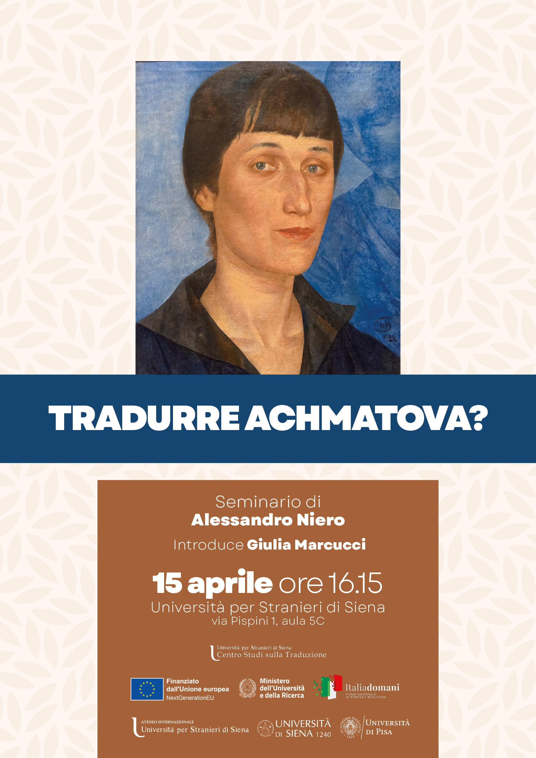 Achmatova si traduce ormai da un secolo e la domanda del titolo potrebbe apparire non soltanto provocatoria. Il seminario si focalizza sulle traduzioni italiane di Achmatova, con esempi tratti sia al lavoro (in fieri) del relatore medesimo, sia a quanto fatto precedentemente da colleghi, operatori culturali e altre figure.Introduce Giulia MarcucciIl seminario si svolge nell’aula 5C di via Pispini 1Alessandro NieroAlessandro Niero insegna letteratura russa all’Università di Bologna.Si occupa principalmente di poesia russa del secondo Novecento, della sua ricezione in Italia e di traduzione poetica.Sue le monografie L’arte del possibile. Iosif Brodskij poeta-traduttore di Quasimodo, Bassani, Govoni, Fortini, De Libero, Saba (Cafoscarina, Venezia 2008) e Tradurre poesia russa. Analisi e autoanalisi(Quodlibet, Macerata 2019).Ha curato diversi volumi di poeti russi, i più recenti dei quali sono: Boris Pasternak, Quando rasserena(Passigli, Firenze 2020), Irina Ermakova, Lo specchio di bronzo (Einaudi, Torino 2023) ed Elena Švarc, Mattino della seconda neve (Bompiani, Milano 2023). Per la sua attività di traduttore di poesia ha ricevuto diversi riconoscimenti nazionali e internazionali.