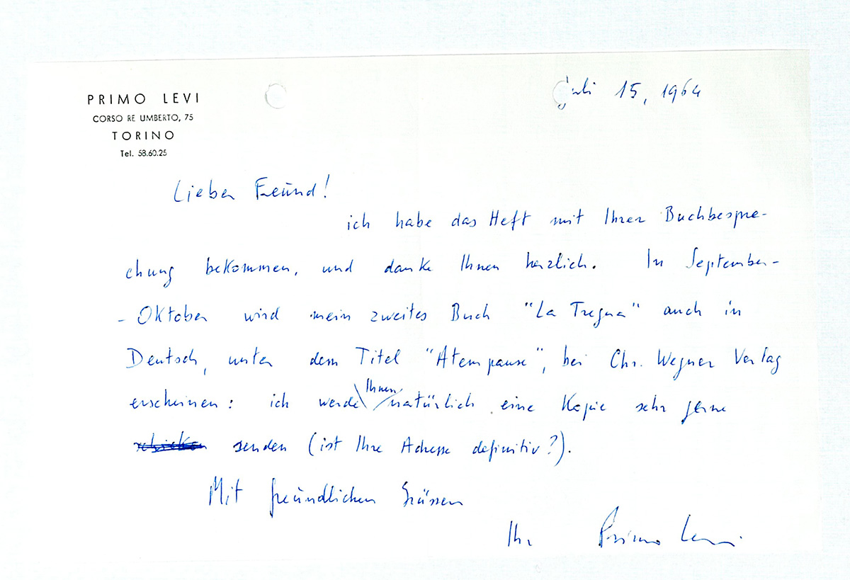 Immagine per gentile concessione dell’archivio privato di Primo Levi